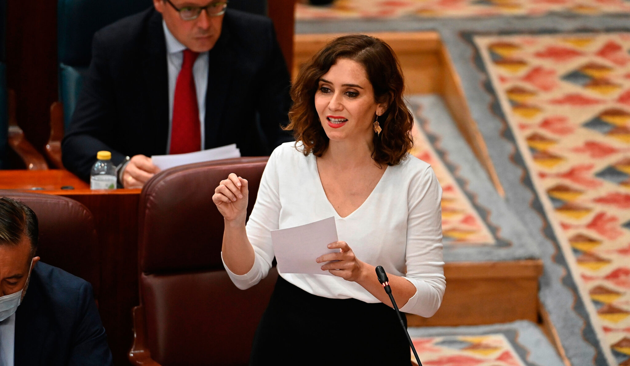 “Cualquier día la vemos con rebequilla en misa”, ha dicho con sorna la presidenta de la Comunidad dirigiéndose a Mónica García