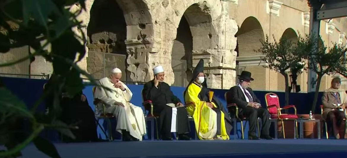 El evento, que ha tenido lugar frente al Coliseo, ha reunido a los representantes de las grandes religiones del mundo, así como distintas personalidades del mundo de la política –como Angela Merkel– y del activismo social, como la escritora superviviente del holocausto Edith Bruck. “Pueblos hermanos. Lo decimos teniendo el Coliseo a nuestras espaldas”, ha dicho Francisco. “Este anfiteatro, en un pasado lejano, fue lugar de brutales entretenimientos de masas: combates entre hombres o entre hombres y animales. Un espectáculo fratricida, un juego mortal hecho con la vida de muchos”, ha recordado.