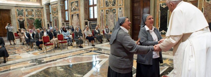 Durante la audiencia que mantuvo con ellas en la Sala Clementina del Vaticano, Francisco las instó a “volver a la calle con la gente”. “Me gusta pensar que cuando te consagras, eres una extensión de esa presencia femenina que caminó con Jesús y los doce, compartiendo la misión y dando su particular aporte”.