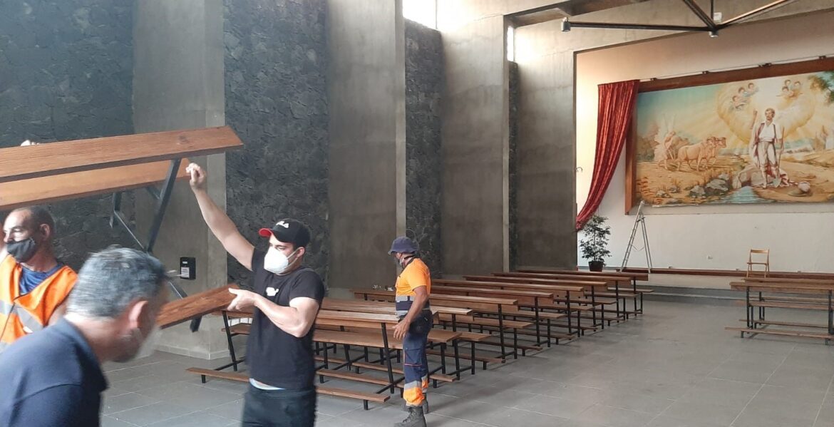 Operarios municipales de Los Llanos, salvan los bancos de la iglesia de san Isidro