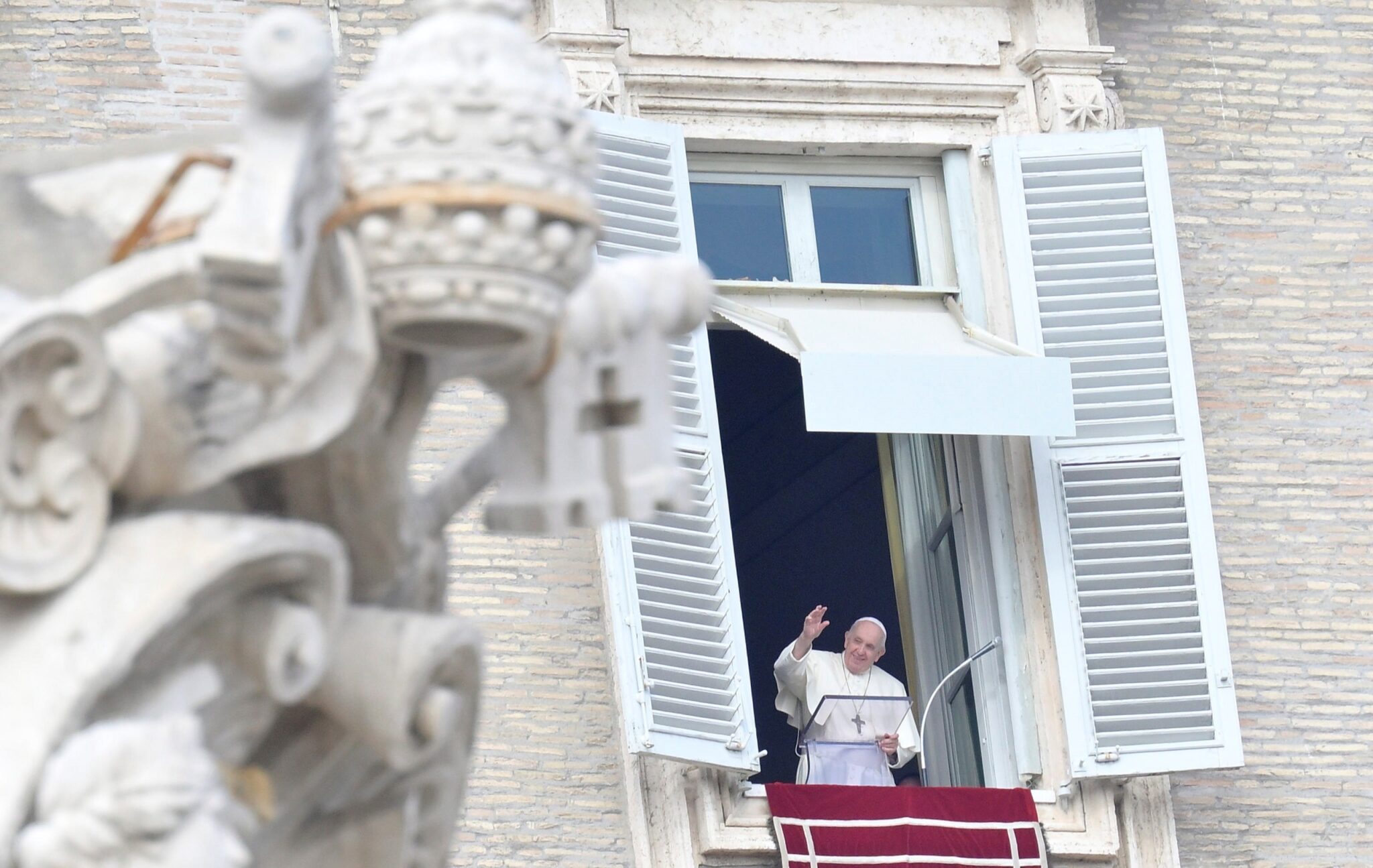 Vatican City (Vatican City State (holy See)), 31/10/2021.- Pope Francis waves from the window of his office overlooking Saint Peter's Square as he leads the Angelus prayer, in Vatican City, 31 October 2021. (Papa) EFE/EPA/CLAUDIO PERI
