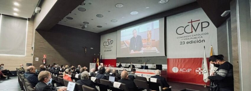 Iceta participó en este acto que tuvo lugar en la Universidad San Pablo CEU y en el también tomó la palabra de forma telemática el presidente de los obispos de Estados Unidos, José Horacio Gómez. Junto a ellos, también se encontraban el presidente de la ACdP, Alfonso Bullón de Mendoza, el director del congreso, Rafael Sánchez Saus y el consiliario de la ACdP y arzobispo emérito de Burgos, Fidel Herráez.