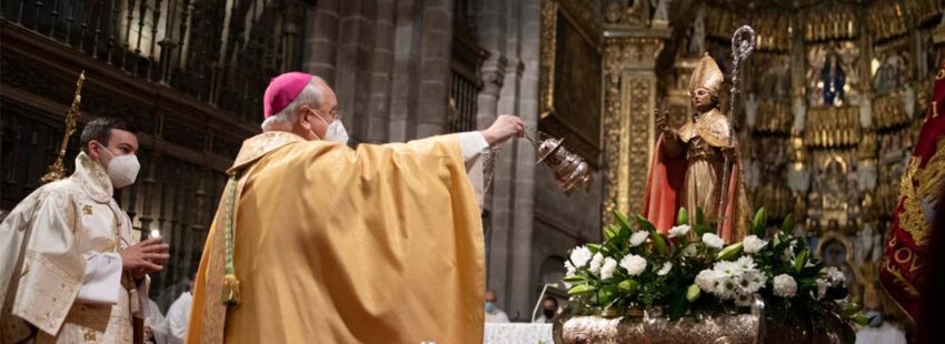 En la misa sintonía, el alcalde Gonzalo Pérez Jácome ha destacado en su ofrenda al santo: “Nunca me cansaré de darle las gracias a todas y cada una de las personas que se involucraron en estos tiempos tan difíciles”. “Nos ha tocado el reto más grande de nuestra generación, recuperar la normalidad que un día se fue y que ojalá vuelva”, recalcó.