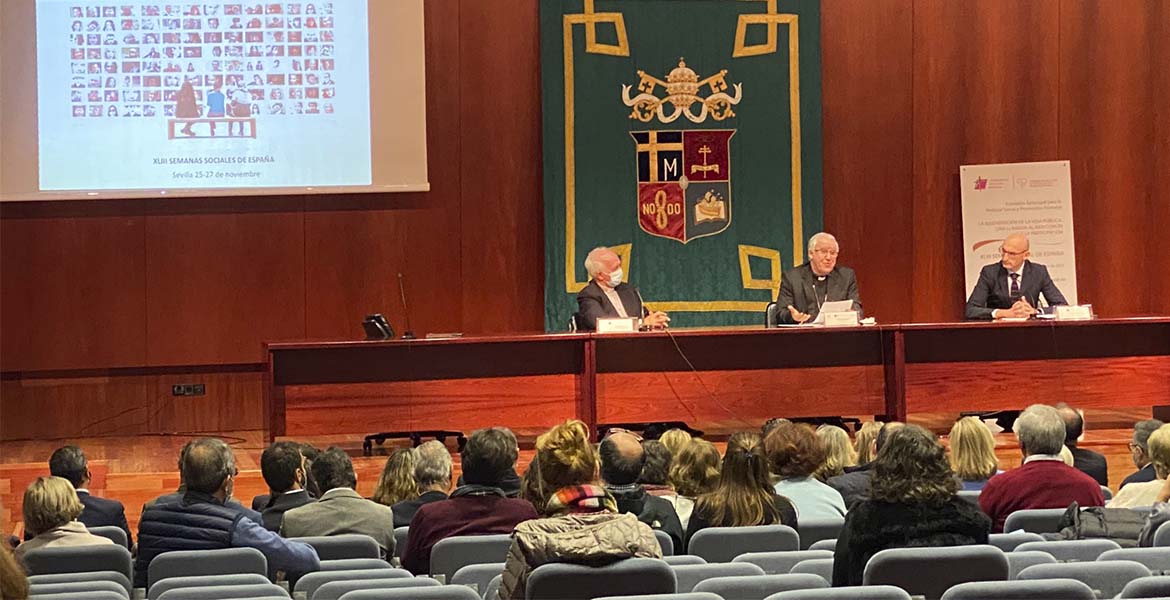 Además de estos debates, se han presentado las conclusiones de las Semanas Sociales que en estos días previos se han celebrado por todas las diócesis. Aunque las últimas palabras han sido las de José Ángel Saiz Meneses, arzobispo de Sevilla, quien agradeció a los organizadores y participantes en las jornadas. Presentó el “arraigo de la fe” que se vive en Sevilla ante la creciente “secularidad”. Tras hacer historia de las Semanas Sociales, las definió como “un taller” en el que se desarrolla una “auténtica cultura del encuentro” entre profesores, pensadores, trabajadores de diferentes ámbitos por avanzar en “la mutua comprensión y la cohesión social”. Por ello, destacó que “la vida pública es una de las periferias de la sociedad” y defendió que el evangelio sigue iluminando las necesidades del mundo de hoy. “La ‘nueva imaginación de la caridad’ nos impulsa precisamente a ir más allá de los grupos de afines y a construir la auténtica amistad social, tan necesaria para la buena convivencia, que permite reencontrarnos especialmente con los más pobres y vulnerables, los que se hallan en las periferias”, instó.
