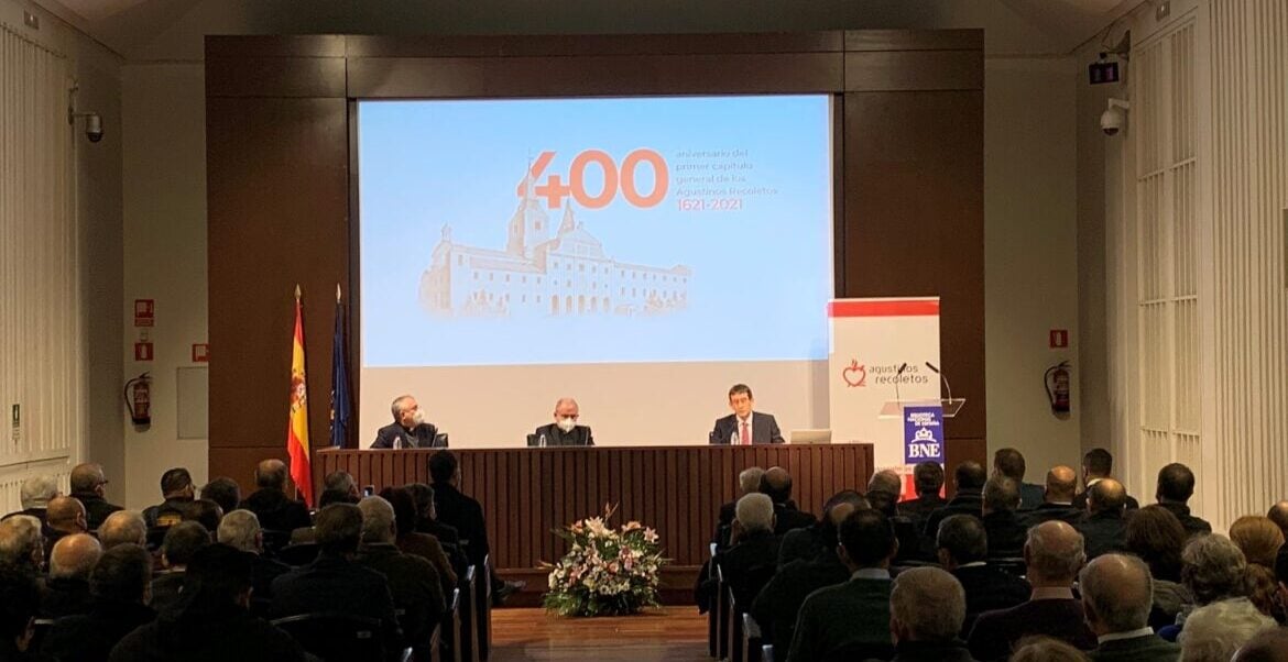 Los agustinos recoletos han celebrado hoy los 400 años del primer capítulo general de la orden que marca el arranque de esta congregación que hoy está extendida por veinte naciones. “Es una llamada a abrir el corazón al espíritu como lo hicieron en su tiempo aquello primeros agustinos recoletos”, expuso el prior general Miguel Miró durante el acto conmemorativo celebrado esta mañana en el auditorio de la Biblioteca Nacional, donde se ubicaba el primer convento de la orden antes de la desamortización de Mendizábal.