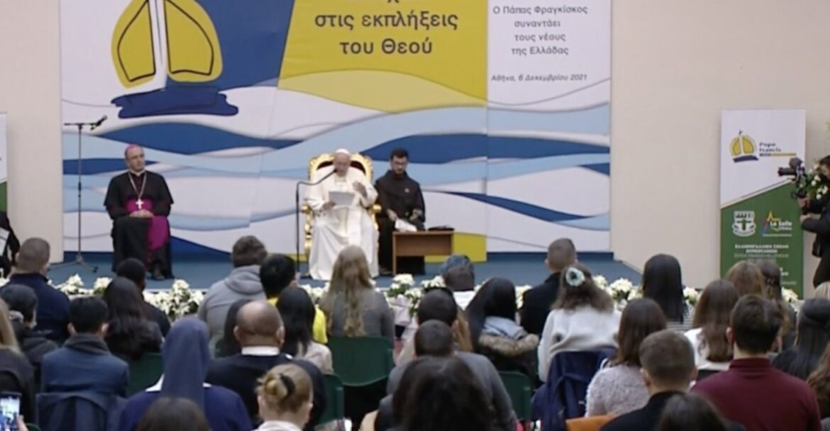 Con estas palabras se dirigió Francisco de los jóvenes griegos, dejando caer una advertencia: “Habrá siempre alguien que les dirá: ‘Déjalo, no te arriesgues, es inútil’. Son los anuladores de sueños, los sicarios de la esperanza, los incurables nostálgicos del pasado”.