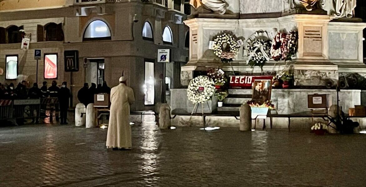 Más temprano aún que el año pasado el Papa Francisco ha llegado a las seis y cuarto de esta mañana a la Plaza de España en Roma para rezar ante la imagen de la Inmaculada. Ha precedido incluso a los bomberos de la capital que desde hace años adornan la estatua de María con una corona de flores blancas.