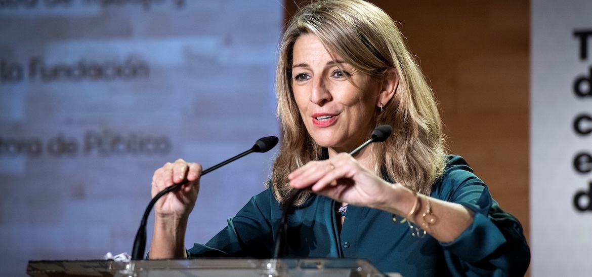 MADRID, 09/12/2021.- La vicepresidenta segunda y ministra de Trabajo, Yolanda Díaz, inaugura la jornada 'Transición digital y cambios en el mundo del trabajo', este jueves, en Madrid. EFE/ Luca Piergiovanni