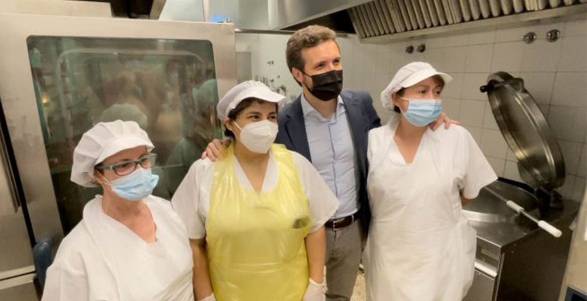 El presidente del Partido Popular, Pablo Casado, ha visitado este 23 de diciembre, a las puertas de la Nochebuena, el Comedor Social de las Hijas de la Caridad de san Vicente de Paúl en Madrid. Una popular institución del barrio de Chamberí que cuenta con una nueva cocina gracias al regalo del líder de la oposición. Para ello, el PP ha donado los 5.565 euros necesarios para la renovación.