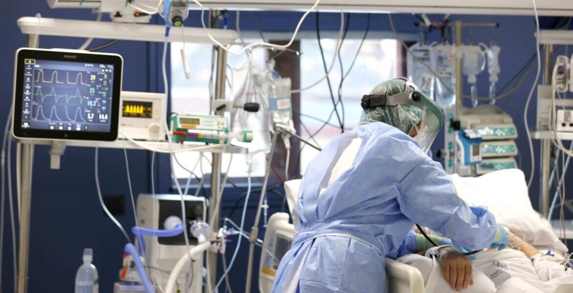 -FOTODELDIA- GRAFCAV1309. BILBAO, 21/12/2021.-Una enfermera del hospital bilbaíno de Basurto, trata este martes a un paciente infectado por covid 19, en la Unidad de Críticos del hospital vizcaíno. EFE/LUIS TEJIDO
