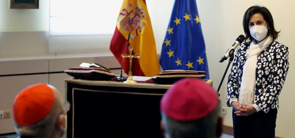 MADRID, 11/01/2022.- La ministra de Defensa, Margarita Robles, preside el acto de jura del cargo del Arzobispo Don Juan Antonio Aznárez Cobo, tras su nombramiento como nuevo Arzobispo Castrense