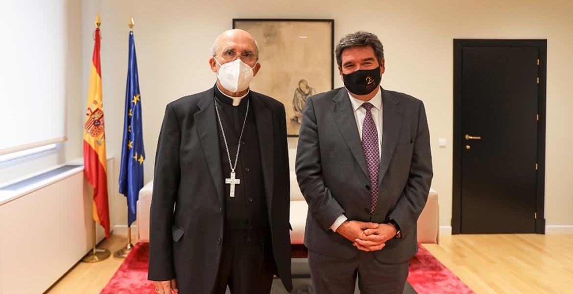 El responsable de Inclusión, Seguridad Social y Migraciones recibe en la sede del ministerio al arzobispo de Madrid y la entidad católica