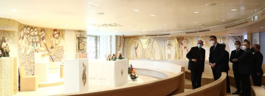 Además, el cardenal arzobispo de Barcelona ha mostrado a Sánchez las instalaciones de la calle Añastro en el madrileño barrio de Arturo Soria. Juntos se han detenido en la Capilla de la Sucesión Apostólica, obra del jesuita Marko Rupnik, donde el presidente de los obispos ha entonado una breve oración por los gobernantes de España. También le ha mostrado la sala de la Asamblea Plenaria y le ha explicado cómo es el trabajo del Episcopado.