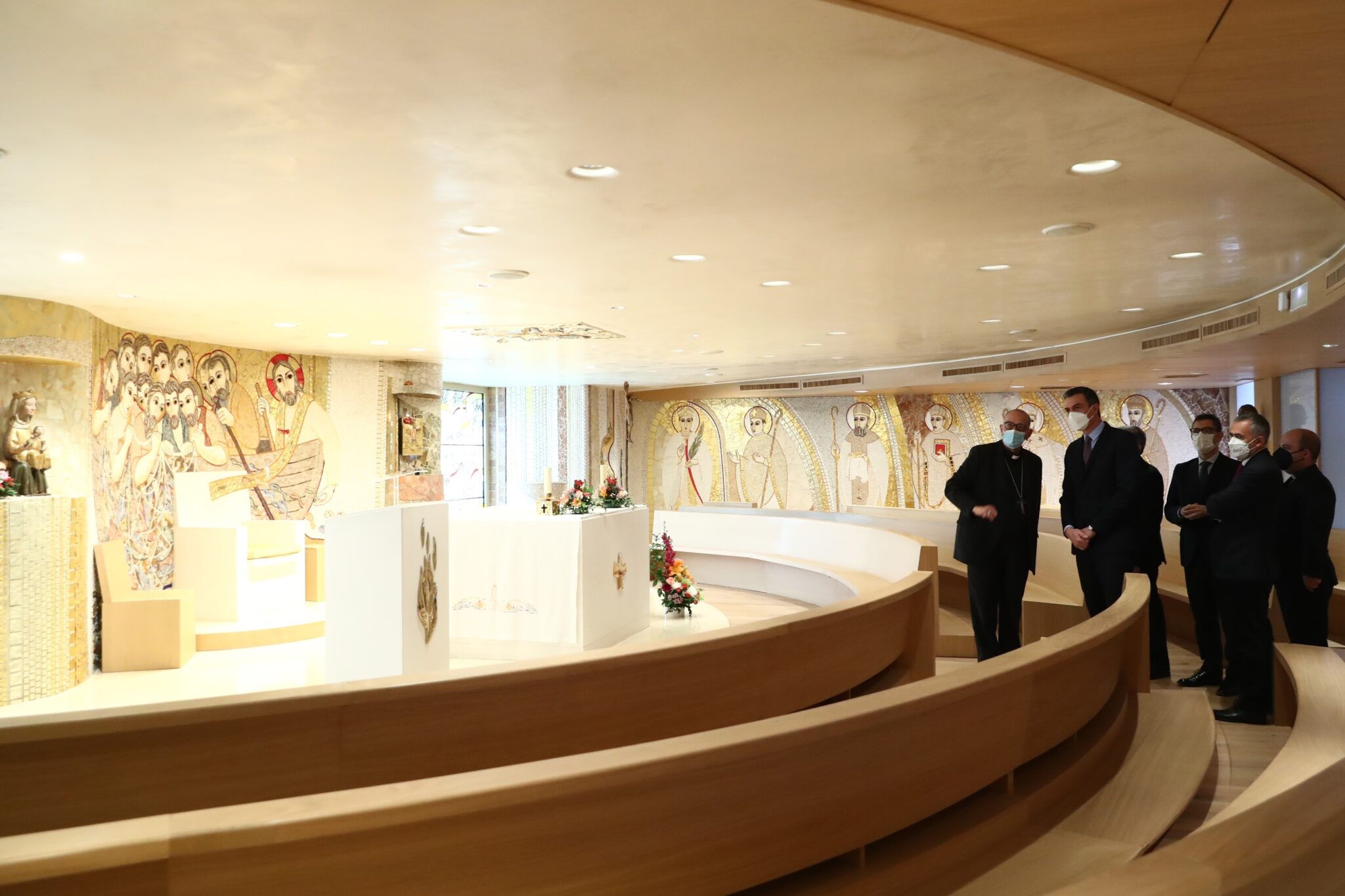 Además, el cardenal arzobispo de Barcelona ha mostrado a Sánchez las instalaciones de la calle Añastro en el madrileño barrio de Arturo Soria. Juntos se han detenido en la Capilla de la Sucesión Apostólica, obra del jesuita Marko Rupnik, donde el presidente de los obispos ha entonado una breve oración por los gobernantes de España. También le ha mostrado la sala de la Asamblea Plenaria y le ha explicado cómo es el trabajo del Episcopado.