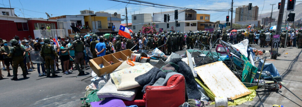 El lunes Iquique amaneció paralizado, con barricadas y sus accesos bloqueados. Más al norte, Arica en el límite con Perú, vive una situación similar.
