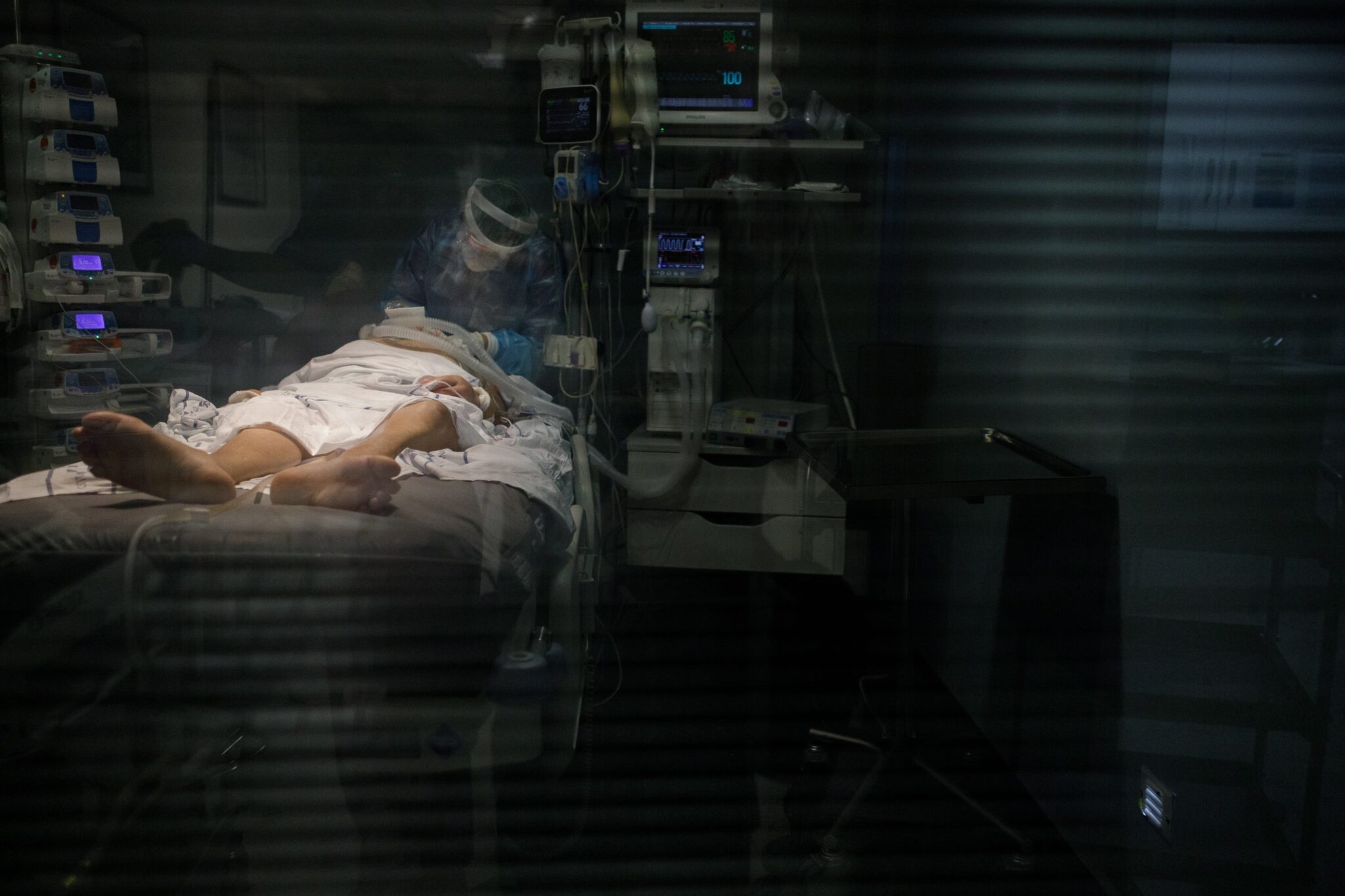 SANTA CRUZ DE TENERIFE (ESPAÑA), 16/11/2020.- El Hospital Universitario Nuestra Señora de La Candelaria, en Santa Cruz de Tenerife, tuvo un papel directo en la gestión del primer caso de coronavirus detectado en España, en enero en La Gomera; le tocó administrar el primer confinamiento de un hotel completo semanas antes de decretarse el estado de alarma en España y ahora se enfrenta a la segunda ola de la pandemia. De todo ello, en este centro sanitario han aprendido que el desafío que supone la covid-19 "no es un sprint, es un maratón". En la imagen, personal sanitario del hospital atiende a un paciente con covid-19 en la UCI. EFE/Ramón de la Rocha