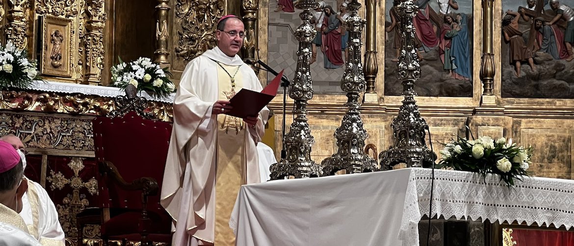 La Eucaristía de inicio de Ministerio Episcopal ha tenido lugar este sábado, 5 de marzo de 2022 en la Catedral de Calahorra, y ha sido presidida por Bernardito Auza, nuncio apostólico en España. Después del saludo inicial del nuncio, Vicente Robredo, administrador diocesano durante la sede vacante, se dirigió a la asamblea y le dedicó unas palabras al obispo: “Don Santos, su corazón le ha abierto nuestra diócesis, para que more en él, lo pastoree, lo acompañe en sus luces y sus sombras, le ayude a separar lo ya marchito de lo vivo y perenne; le abra una luz en medio de la angustia, una certeza en tanta incertidumbre, lo nutra con el Pan y la Palabra, con la unción del Espíritu y sus dones”.