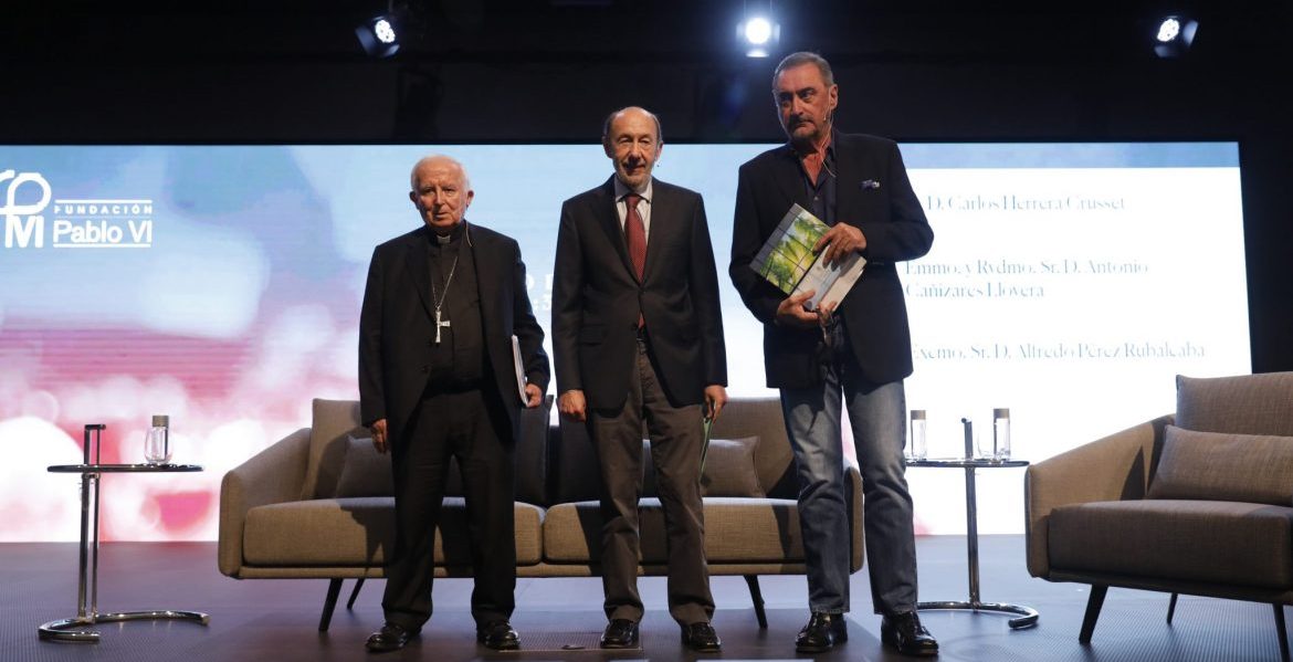 El cardenal Antonio Cañizares, Alfredo Pérez Rubalcaba y Carlos Herrera/JESÚS G. FERIA