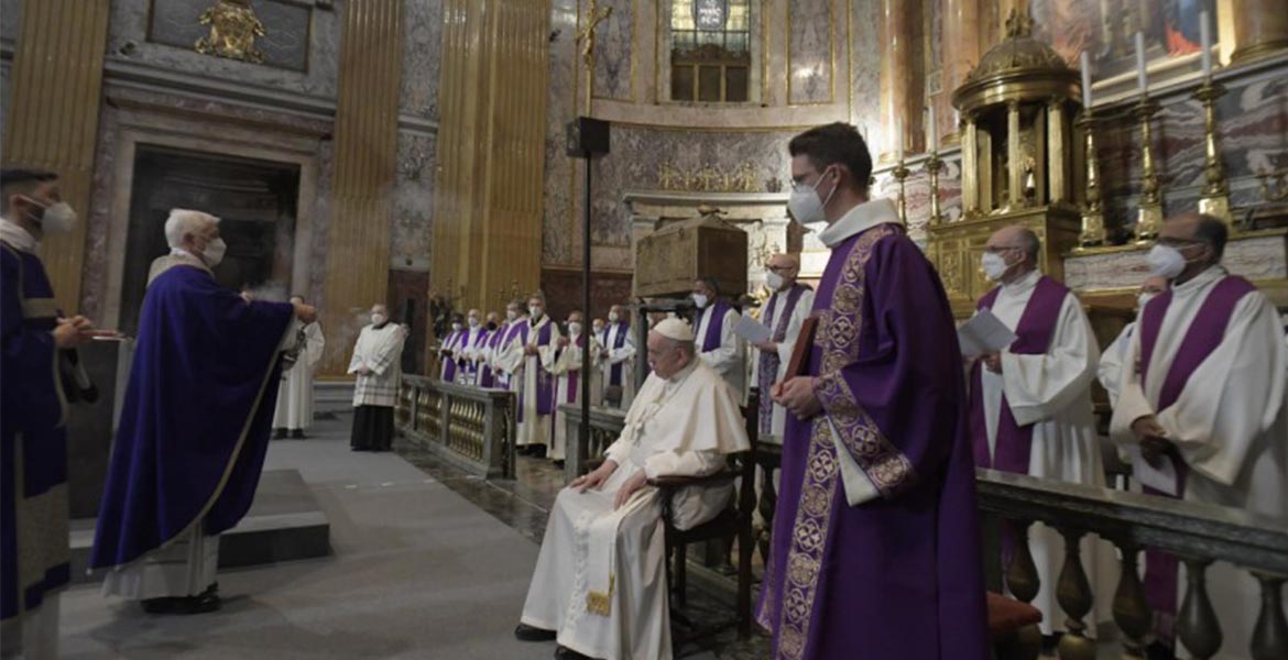 El papa Francisco ha vuelto a la iglesia del Gesù de Roma para participar en la misa por la celebración del 4º centenario de la canonización de san Isidro Labrador, Ignacio de Loyola, Francisco Javier, Teresa de Jesús y san Felipe Neri. En uno de los templos más reconocibles de la Compañía, que custodia los restos de san Ignacio y una importante reliquia de san Francisco Javier, relacionó la vida de los santos con el evangelio de la Transfiguración, el propio del segundo domingo de Cuaresma. La celebración de la eucaristía ha estado presidida por el superior general de los jesuitas, Arturo Sosa, y el papa Francisco ha pronunciado la homilía. Esto puede ser debido a la reducción de actos públicos por la inflamación de rodilla del pontífice.