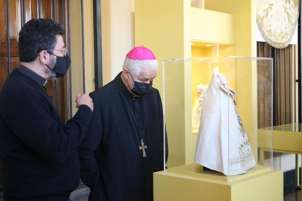 “A propósito de la celebración del día del Patrimonio Cultural, deseo invitarles a visitar nuestro Museo Arquidiocesano de Arte Sacro, ubicado a un costado de la Basílica del Roble, en el centro de la Ciudad, dónde se realiza la exposición temporal ‘Costuras del Cielo. El ajuar de la Virgen del Roble’”.