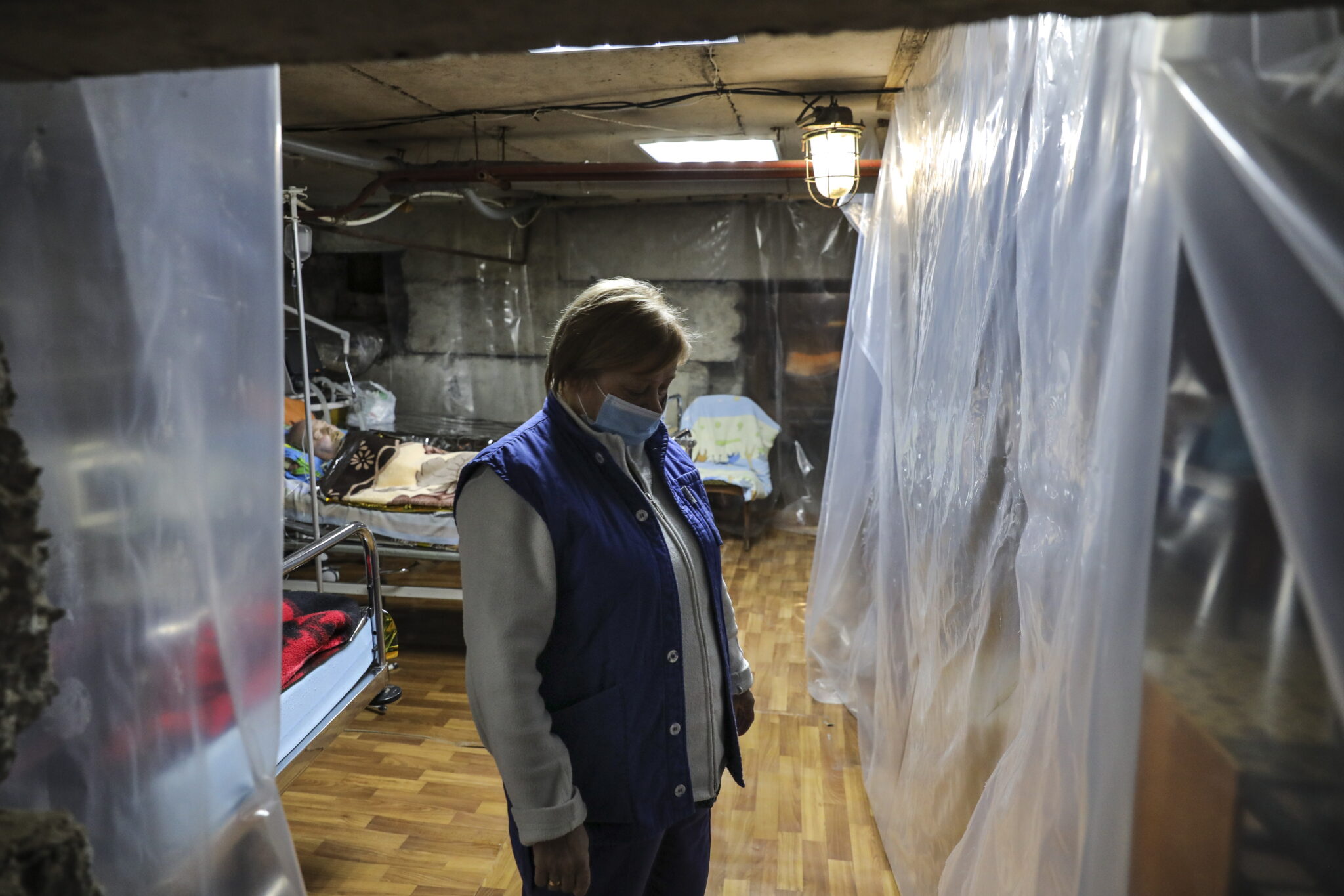 Zhytomyr (Ukraine), 13/03/2022.- A nurse and a patient in the underground shelter of Zhytomyr Hospital Number 2, in Zhytomyr, Ukraine, 13 March 2022. The shelter is working as a unity for people without mobility after the Hospital been bombed on 02 March. Russian troops entered Ukraine on 24 February prompting the country's president to declare martial law and triggering a series of announcements by Western countries to impose severe economic sanctions on Russia. (Rusia, Ucrania) EFE/EPA/MIGUEL A. LOPES
