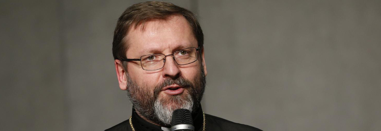 Archbishop Sviatoslav Shevchuk of Kyiv-Halych, Ukraine, major archbishop of the Ukrainian Catholic Church, speaks to reporters at the Vatican in this Jan. 26, 2018, file photo. (CNS photo/Paul Haring)