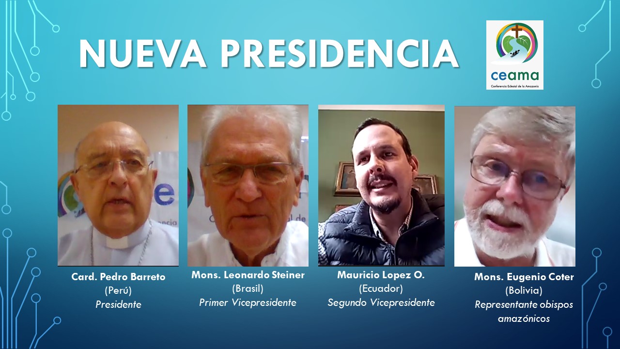 La nueva directiva ha quedado conformada por el cardenal Pedro Barreto, arzobispo de Huancayo (Perú) como presidente, mientras que Leonardo Steiner, arzobispo de Manaos, será el primer vicepresidente y Mauricio López, coordinador del Centro de Redes y Acción Pastoral del Consejo Episcopal Latinoamericano (Celam) asumirá como segundo vicepresidente.