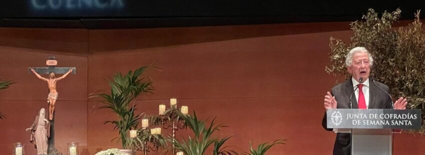 “No os dejéis arrebatar el tesoro de vuestra Semana Santa, que nadie se atreva a manipularla”, advirtió a los conquenses que le escuchaban en el Teatro Auditorio de la ciudad manchega: “Que nadie caiga en la tentación de convertirla en una mera atracción turística, salvadla del escaparate de vanidades y superficialidad que caracteriza nuestra sociedad moderna”.