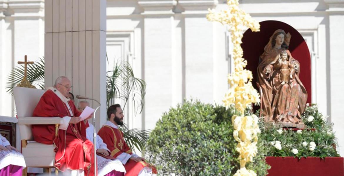 Tras concluir la celebración de la eucaristía en el Domingo de Ramos en la Pasión del Señor, el papa Francisco ha rezado junto a los fieles reunidos en la Plaza de San Pedro el ángelus al comienzo de la Semana Santa de este 2022. Han sido muchos los que han participado en la primera gran celebración que se desarrolla desde que comenzara la pandemia.