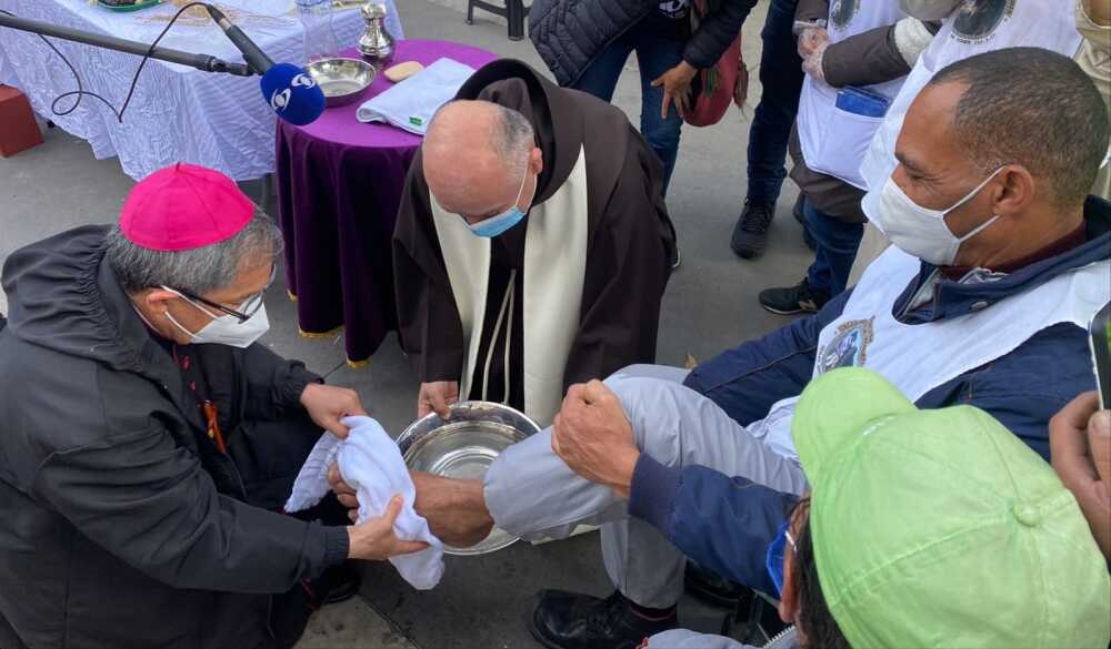 Este Jueves Santo Luis José Rueda, arzobispo de Bogotá y presidente de la Conferencia de Obispos de Colombia, celebró el tradicional lavatorio de pies con habitantes de calle en el centro de la ciudad.