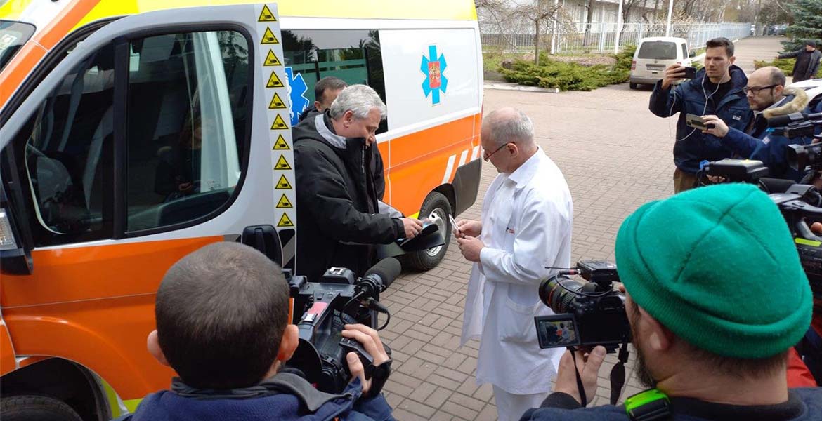 El vehículo sanitario depositado por el limosnero apostólico irá destinado al hospital de cardiología de la capital ucraniana