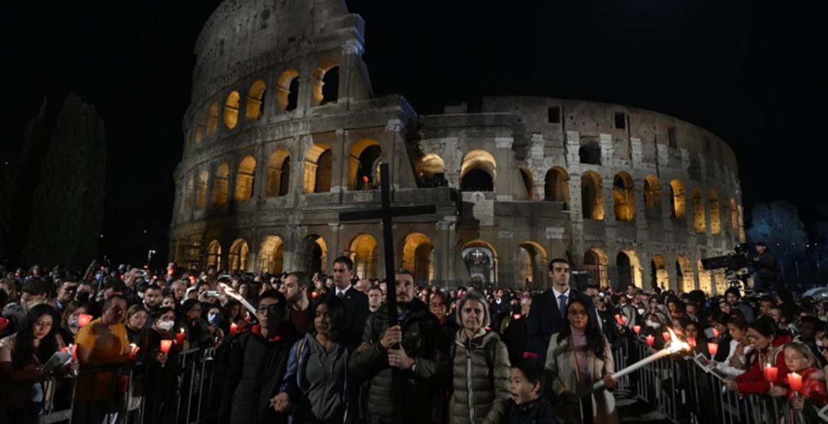 Después de dos años, el Vía Crucis de la noche del Viernes Santo volvió al Coliseo romano. El papa Francisco volvió a participar y seguir las meditaciones desde la explanada del templo de Venus y Roma –recién restaurado– y junto a las imponentes obras de una nueva estación de metro. Allí fue saludado por el alcalde de Roma, Roberto Gualtieri. En la oración final, el pontífice pidió que se mantenga “encendida en nuestras familias la lámpara del Evangelio, que ilumina alegrías y dolores, cansancios y esperanzas; que cada casa refleje el rostro de la Iglesia, cuya ley suprema es el amor”.