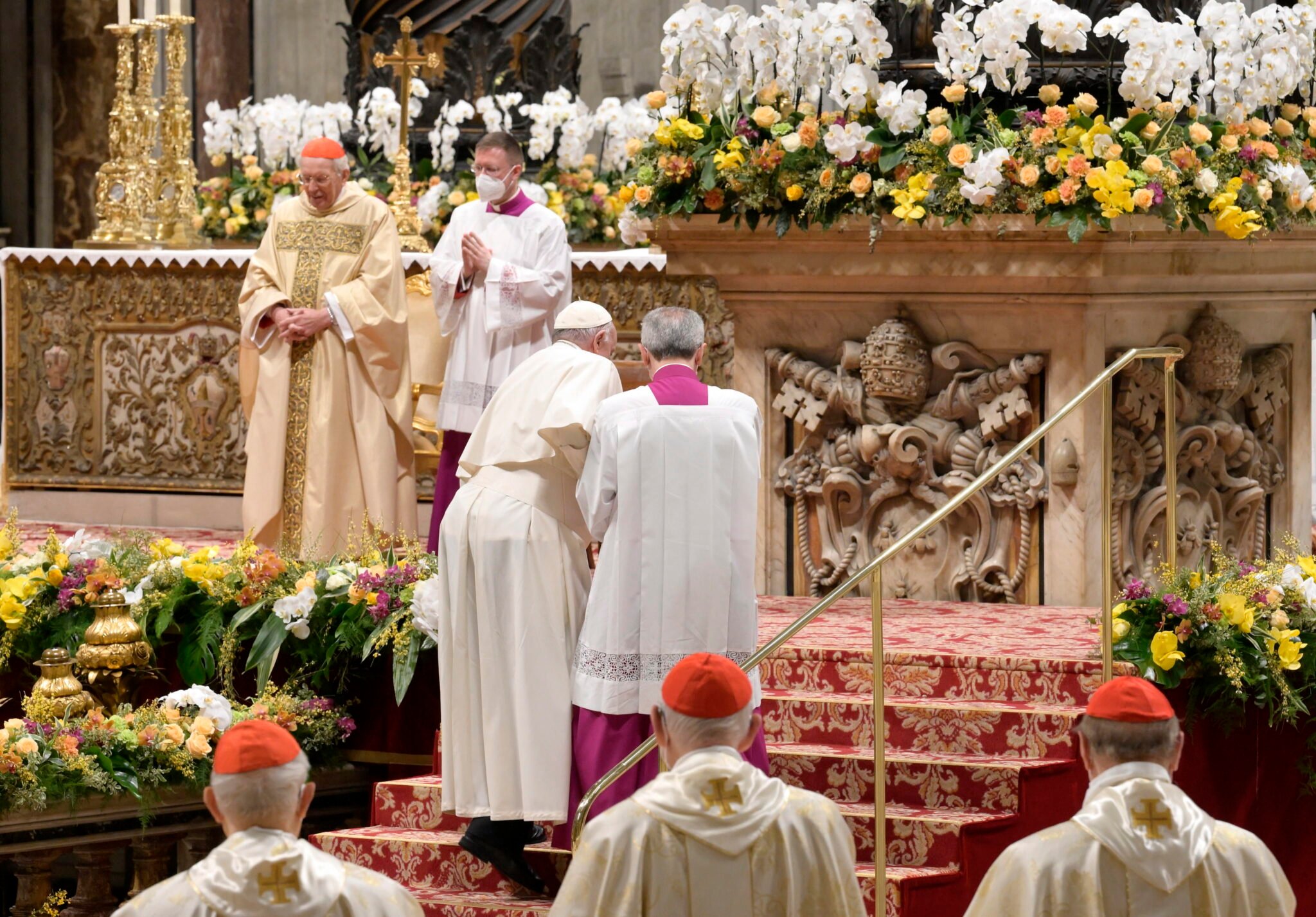Francisco pronunció la homilía y administró el sacramento del bautismo, pero cedió la presidencia de la celebración al cardenal Re