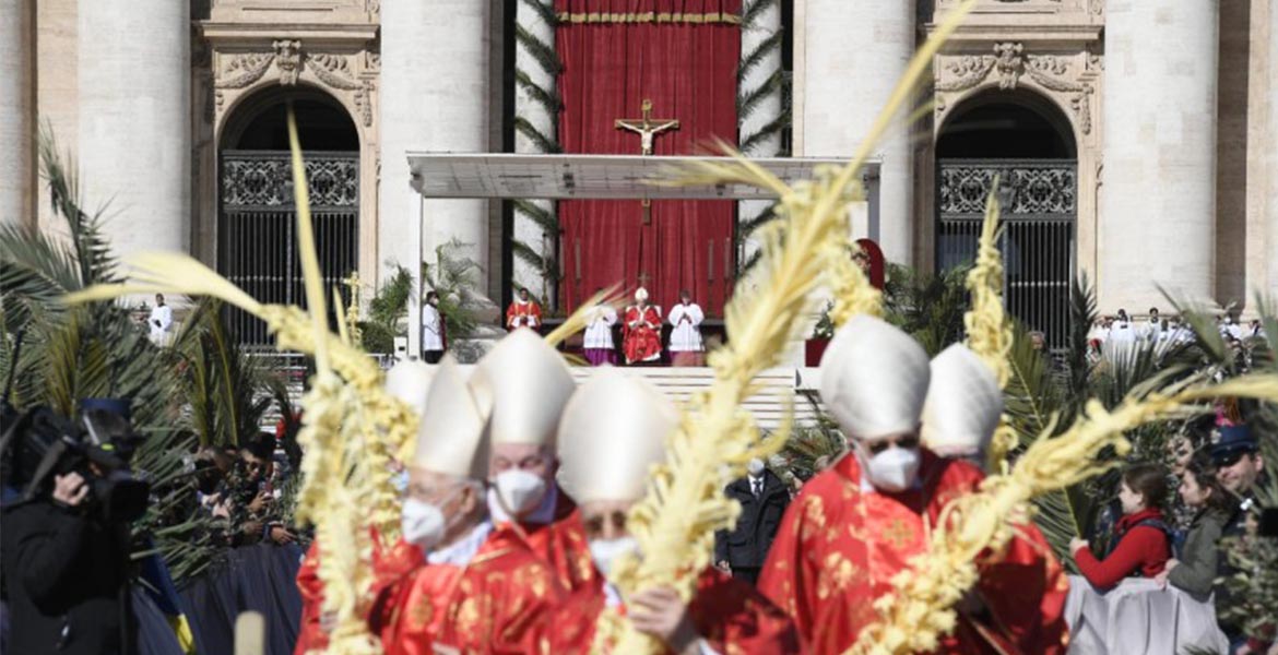 El papa Francisco volvió a la plaza en la primera celebración masiva en dos años y presidió los ritos iniciales de Domingo de Ramos sin desplazarse junto al obelisco central ni participando en la procesión hasta el altar tras la bendición de las palmas debido a las molestias que sufre en una rodilla. Un buen número de fieles y de cardenales y obispos participaron en la celebración.