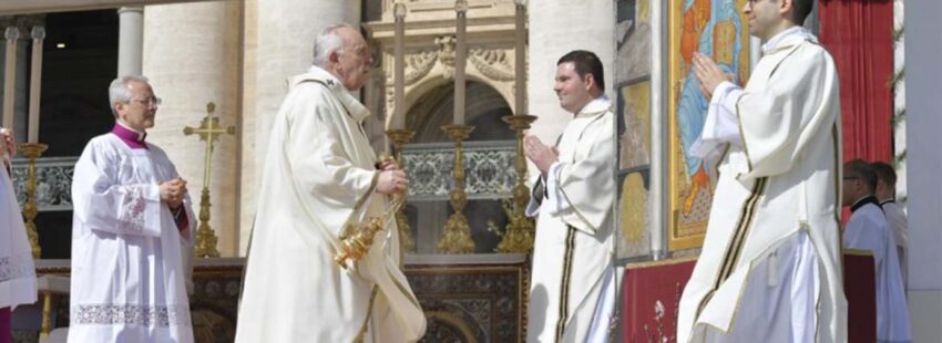 En la celebración pascual en la Plaza de San Pedro, se ha desarrollado con toda solemnidad un rito particular de la misa papal: el ‘Resurrexit’. Durante el canto, al comienzo de la celebración, los diáconos abrían las portezuelas de un icono bizantino de la Resurrección –el llamado icono ‘Acheropita’, es decir, no pintado por mano humana, que se encuentra en la basílica de San Juan de Letrán–. Este símbolo, de claro sabor oriental, recuerda a Pedro como primer testigo de la Resurrección y por eso se repite ante el Papa, sucesor del príncipe de los apóstoles. También se ha proclamado el evangelio en latín y en griego.
