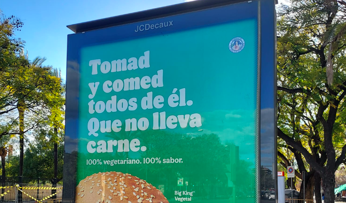 Todo comenzaba hace unos días, cuando, en plena Semana Santa –y haciendo referencia a esta circunstancia– Burger King ponía en marcha una campaña en la que se publicitaban sus productos no cárnicos. “Tomad y comed todos de él. Que no lleva carne”, podía leerse en algunas marquesinas. “Carne de mi carne”, se leía en otras, con la palabra “carne” tachada y sustituida por “vegetal”.
