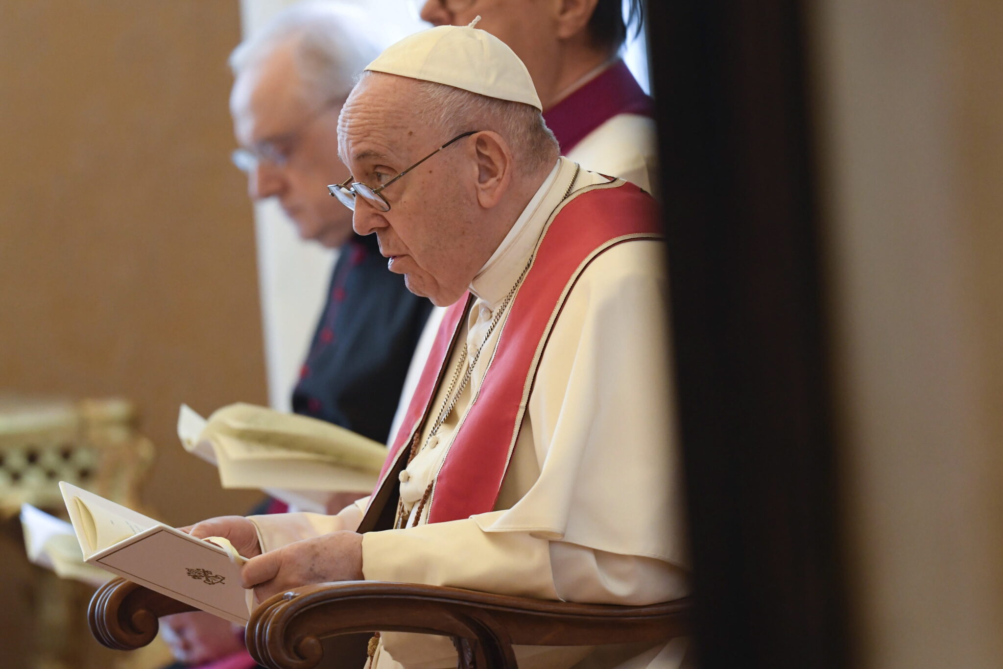 Vatican City (Vatican City State (holy See)), 04/03/2022.- A handout picture provided by the Vatican Media shows Pope Francis (R) during Ordinary Public Consistory for the vote on some causes of Canonization, at the Vatican Ciy, 04 March 2022. (Papa) EFE/EPA/VATICAN MEDIA HANDOUT HANDOUT EDITORIAL USE ONLY/NO SALES