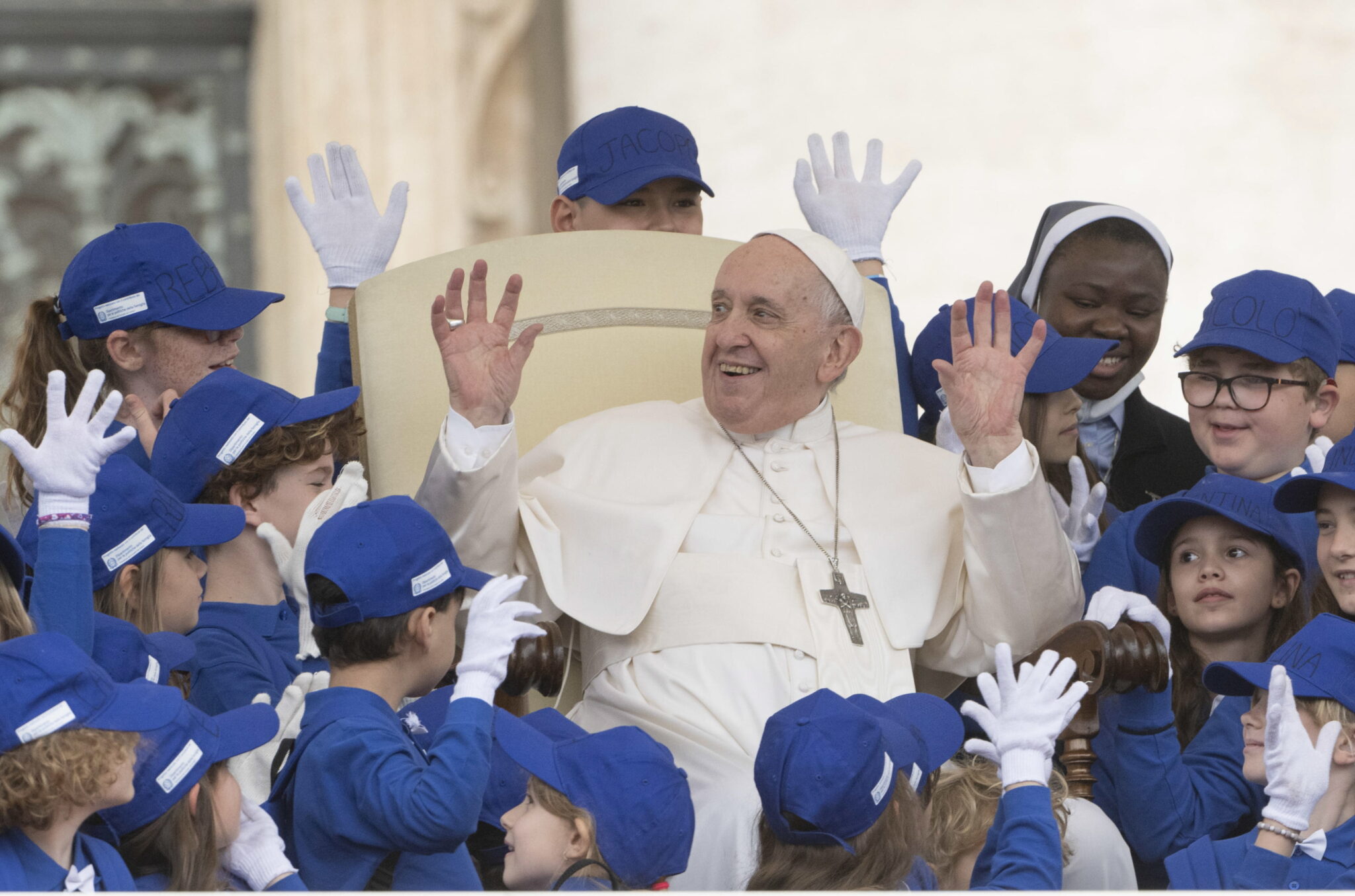 Vatican City (Vatican City State (holy See)), 04/05/2022.- Pope Francis plays with children during the weekly Papal General Audience in Saint Peter's Square, Vatican City, 04 May 2022. (Papa) EFE/EPA/MAURIZIO BRAMBATTI