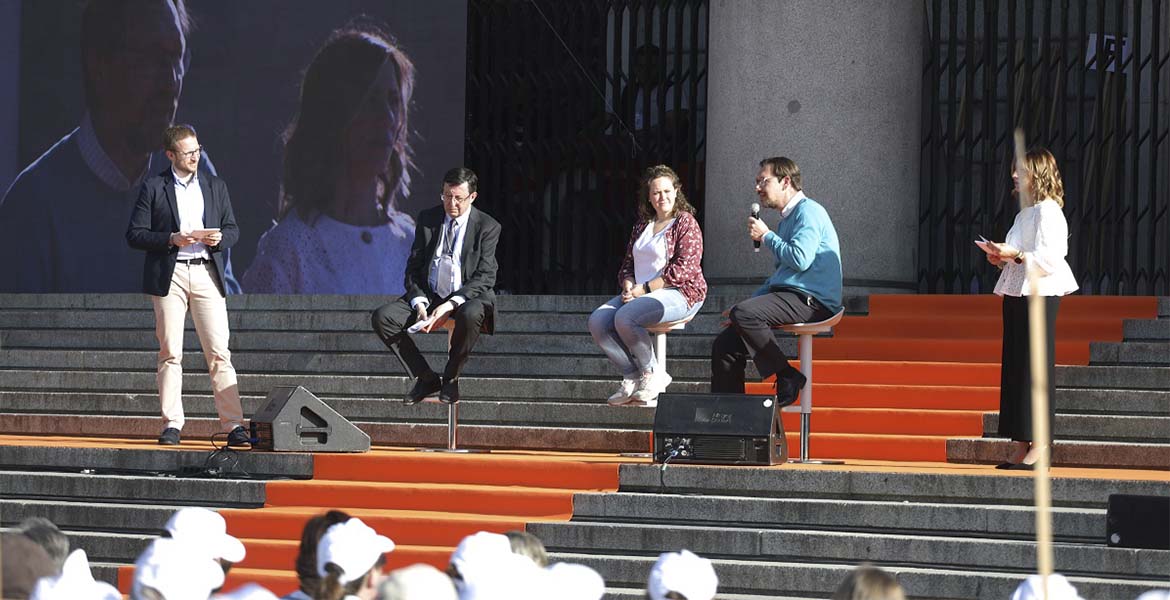 Representantes de los más de 600 grupos, con cerca de 12.000 personas, que han participado en los consulta participan en un acto de clausura en la explana de la Almudena
