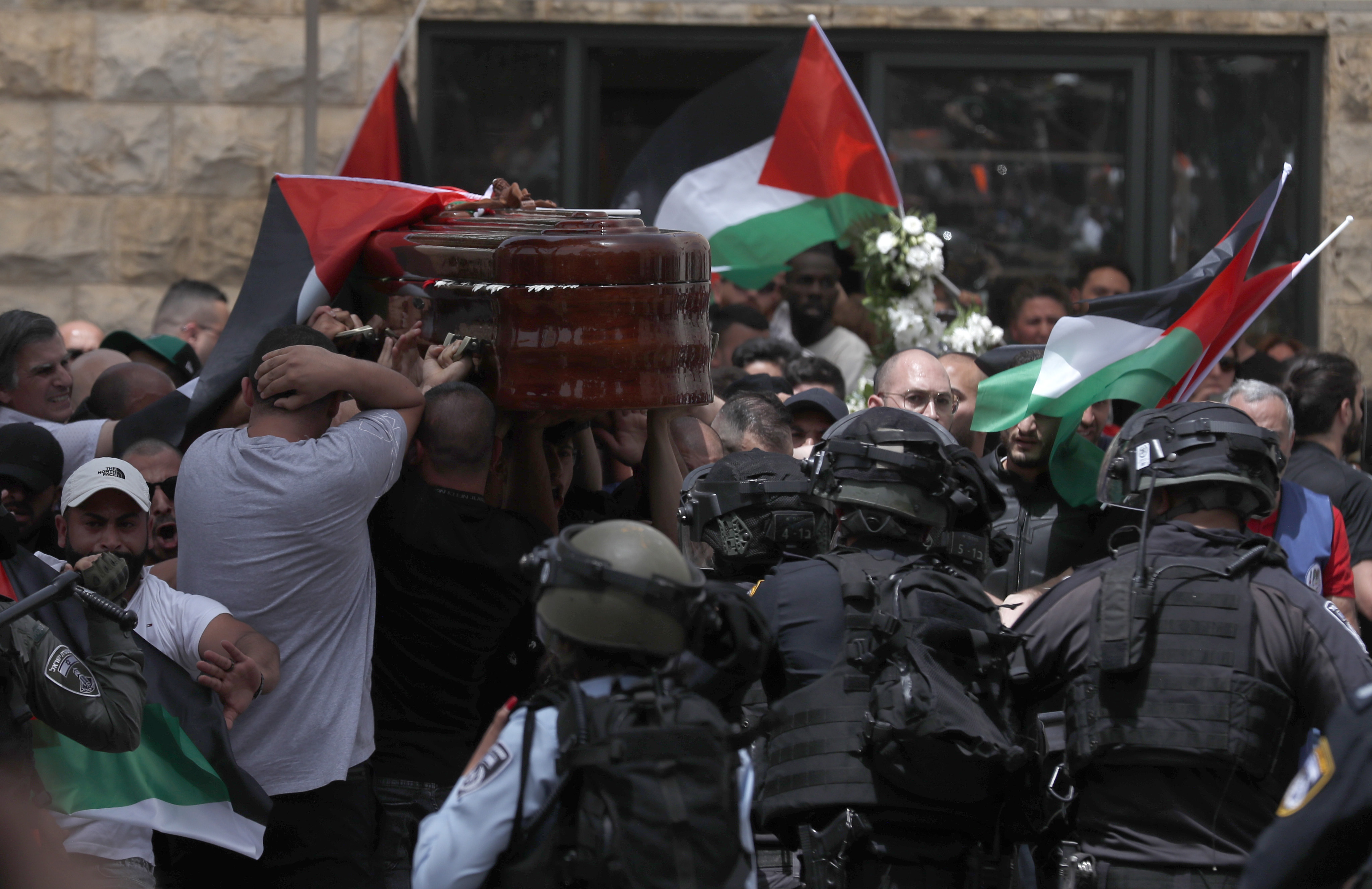 Pese a la conmoción en la comunidad internacional, la policía de Israel no dudó en protagonizar otras dos duras escenas que generaron aún más incomprensión. La primera se dio a las pocas horas, cuando varios agentes se presentaron en casa de la periodista, donde se la velaba, y descolgaron a la fuerza las banderas palestinas presentes. La segunda se dio el día 13 en su entierro, cuando se trasladaba el ataúd de esta fiel cristiana a la catedral greco-melquita de Jerusalén. Los uniformados israelíes cargaron con tanta fuerza contra la multitud concentrada que llegaron a golpear con sus porras a quienes, sin poder huir, cargaban el féretro, coronado por una cruz y que llegó a golpear en un extremo sobre el suelo.