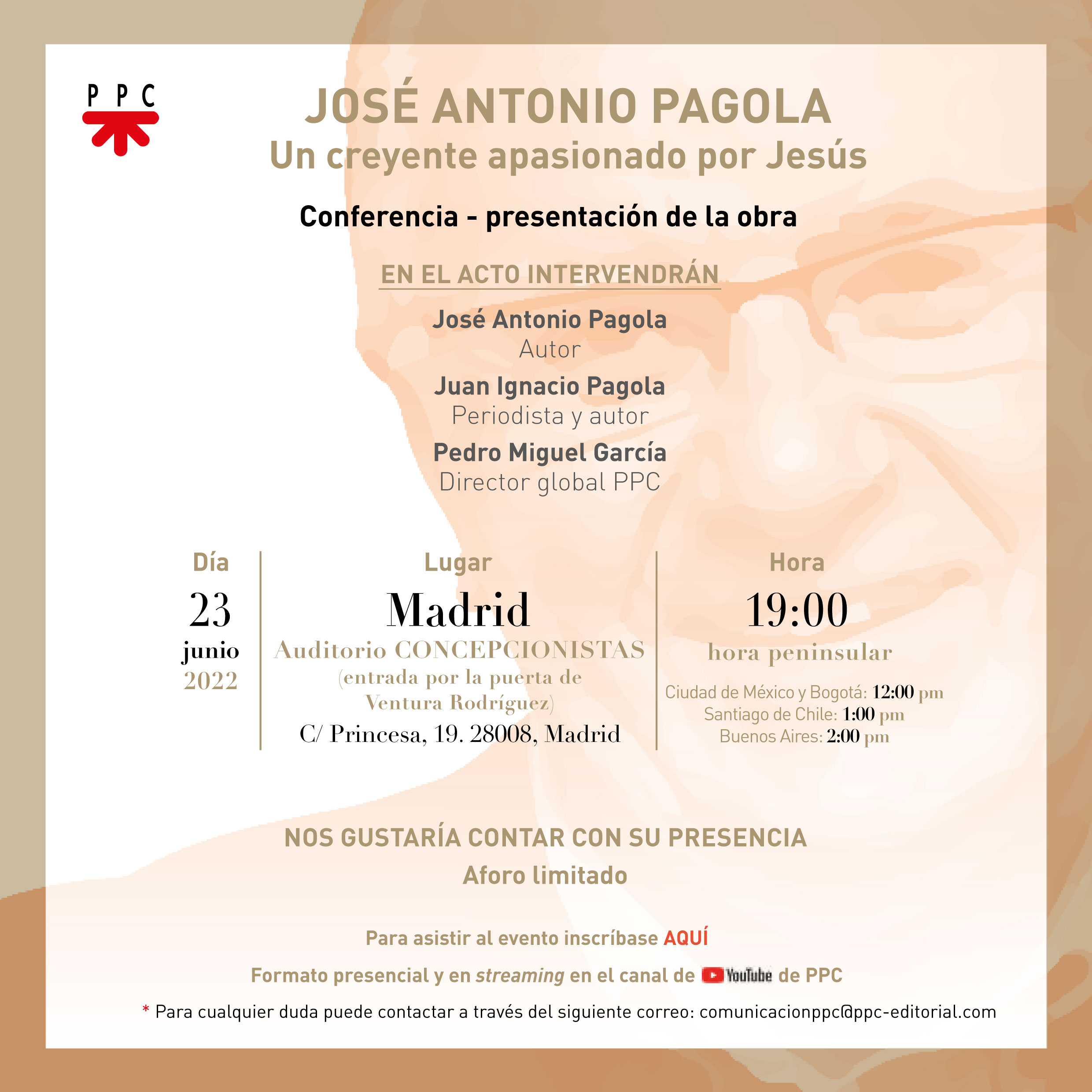 PPC Editorial presentará el próximo jueves, 23 de junio de 2022, su último libro: ‘José Antonio Pagola. Un creyente apasionado por Jesús‘, una conversación entre el teólogo y el periodista Juan Ignacio Pagola. Ambos estarán acompañados por el director global de PPC, Pedro Miguel García.