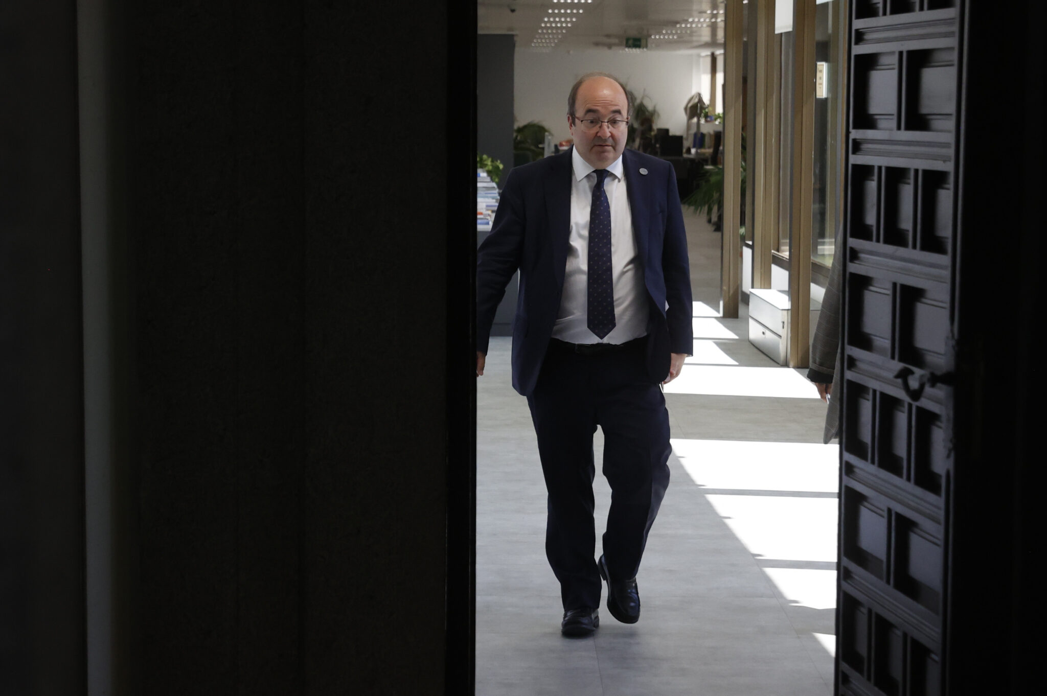 MADRID, 24/06/2022.- El ministro de Cultura, Miquel Iceta, a su llegada este viernes a una reunión con la ministra de Educación y Formación Profesional, Pilar Alegría, en el marco de la IV Comisión Interministerial para el Desarrollo del Estatuto del Artista. EFE/Juan Carlos Hidalgo