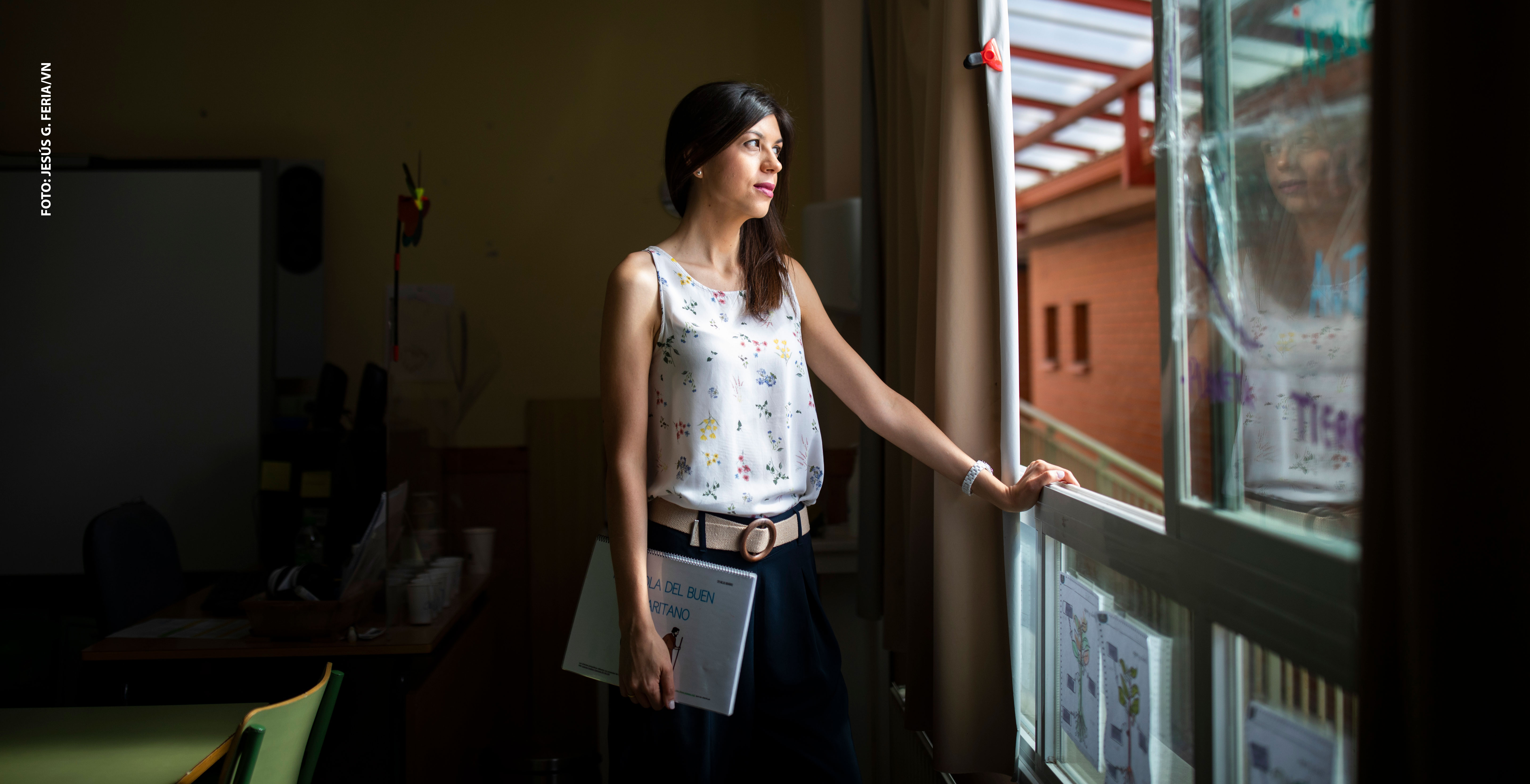 Es profesora de Religión en el colegio Miguel Hernández (Colmenar Viejo) de Educación Especial con alumnos desde los 3 a los 21 años. Su recorrido comenzó en otro similar haciendo una sustitución, luego pasó por otros centros ordinarios, mientras se ha ido especializando cada vez más en este campo a través de su práctica docente complementada con los estudios de psicopedagogía.