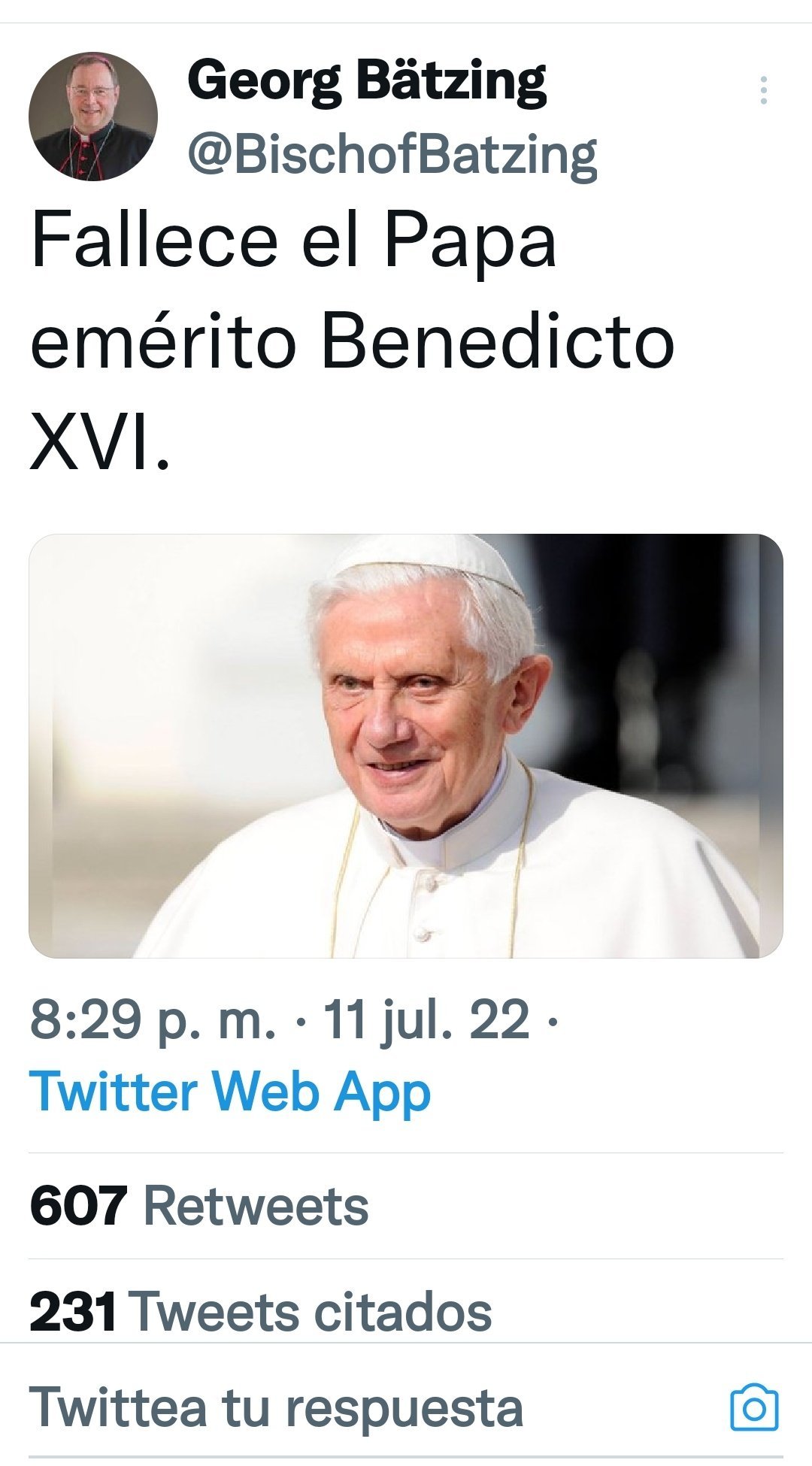 Especialmente en el mundo latino, por ser de madrugada, Debenedetti ha conseguido que incluso muchos medios hayan dado credibilidad a la “noticia” y hayan oficializado la muerte de Benedicto XVI. Nada más lejos de la realidad. La falsa cuenta, por cierto, ya ha sido suspendida por Twitter.