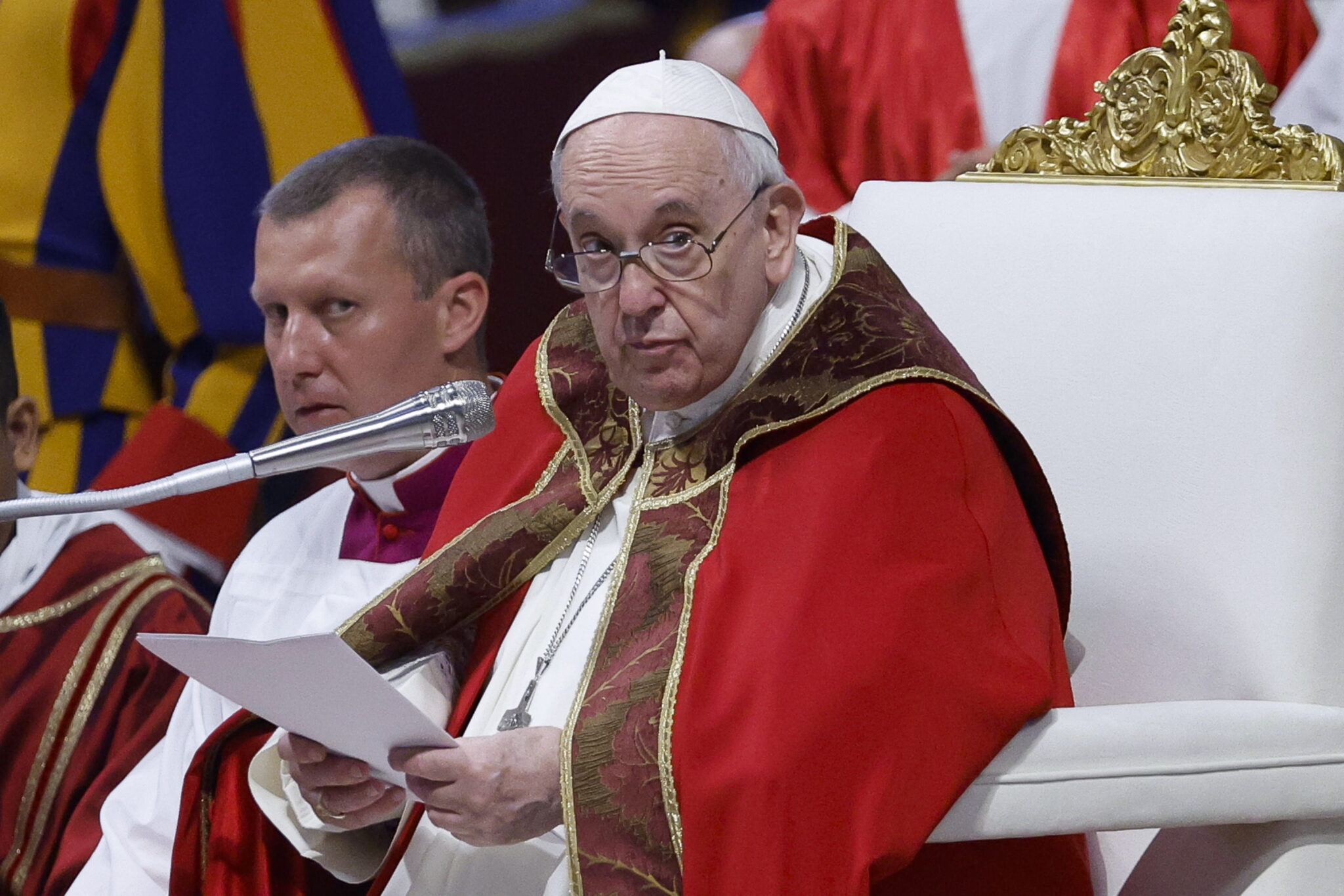 Vatican City (Vatican City State (holy See)), 29/06/2022.- Pope Francis (R) leads a Mass during the Solemnity of Saints Peter and Paul, in St. Peter's Basilica at the Vatican, 29 June 2022. (Papa) EFE/EPA/FABIO FRUSTACI