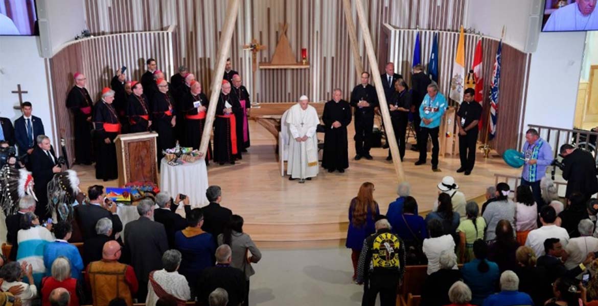 La iglesia del Sagrado Corazón de Edmonton ha sido el lugar elegido para que el papa Francisco se encuentre con las poblaciones indígenas y los miembros de las comunidades parroquiales en esta primera jornada completa de su visita apostólica a Canadá. Tras el impactante encuentro de la mañana de este 25 de julio, en Maskwacis el pontífice ha vuelto a la capital de la provincia de Alberta para continuar con los gestos penitenciales que marcarán este viaje.