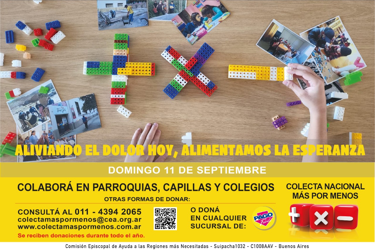 La Conferencia Episcopal Argentina, a través de la Comisión Episcopal de Ayuda a las Regiones Más Necesitadas, difundió una nueva edición de la Colecta Nacional que se realiza todos los años el segundo fin de semana de septiembre, en todas las parroquias y comunidades del país.