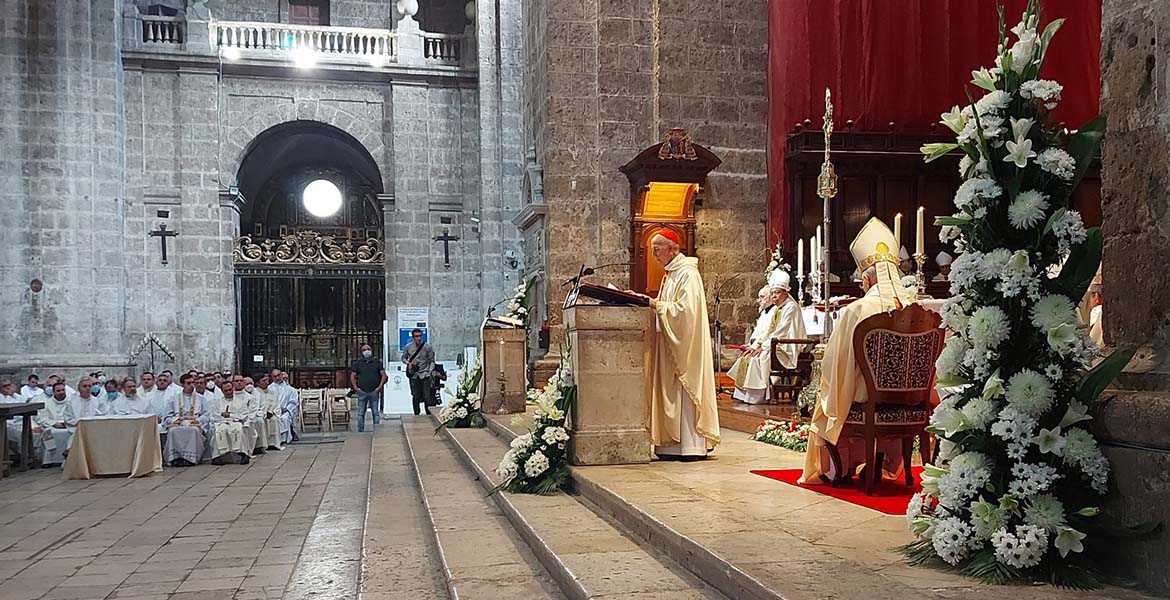En su homilía, destacó que el rito que se estaba celebrando “repetido, insistente –quizás opaco y aburrido si noentramos en él y participamos– quiere ayudarnos a poner en hora el reloj de nuestro corazón –con susaltibajos eufóricos, anodinos o depresivos– y el reloj de la historia – con sus días y trabajos llenos de logros, fracasos y crisis inesperadas – con la presencia eterna de quien es, Rico en misericordia, Rey redentor y Señor y dador de vida”. Por ello, reflexionó sobre el “Misterio de la Iglesia” que estaba representada en la celebración.