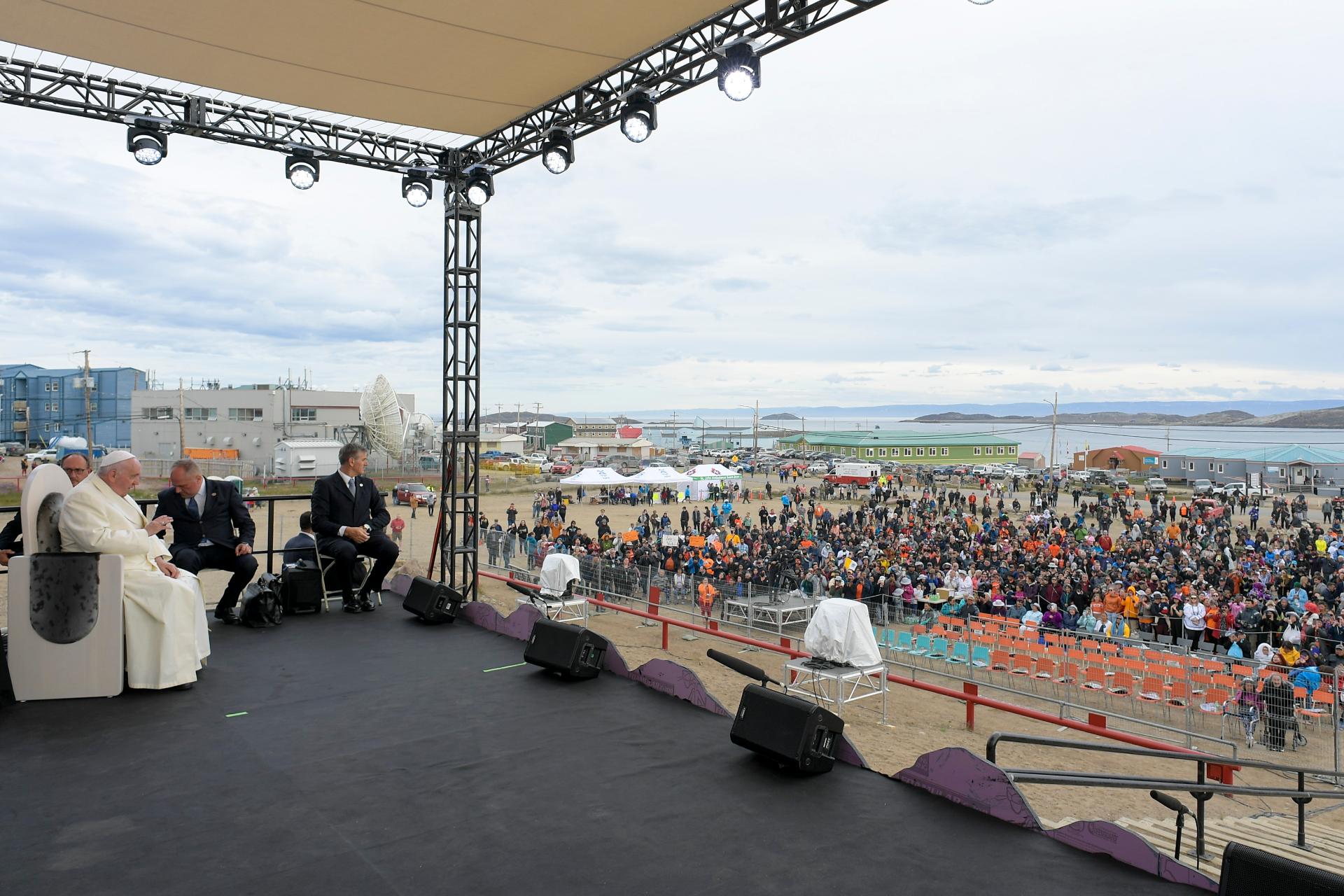Las últimas horas del viaje apostólico del papa Francisco por Canadá ha incluido una reunión privada con algunos alumnos de los antiguos internados para indígenas en las escuelas primarias en la ciudad de Iqaluit, en el Ártico canadiense, a unos 300 kilómetros al sur del Círculo Polar. En el aeropuerto, según informa el Vaticano, fue recibido por el obispo de Churchill-Hudson Bay, Anthony Wiesław Krótki, O.M.I., y por algunas autoridades locales.