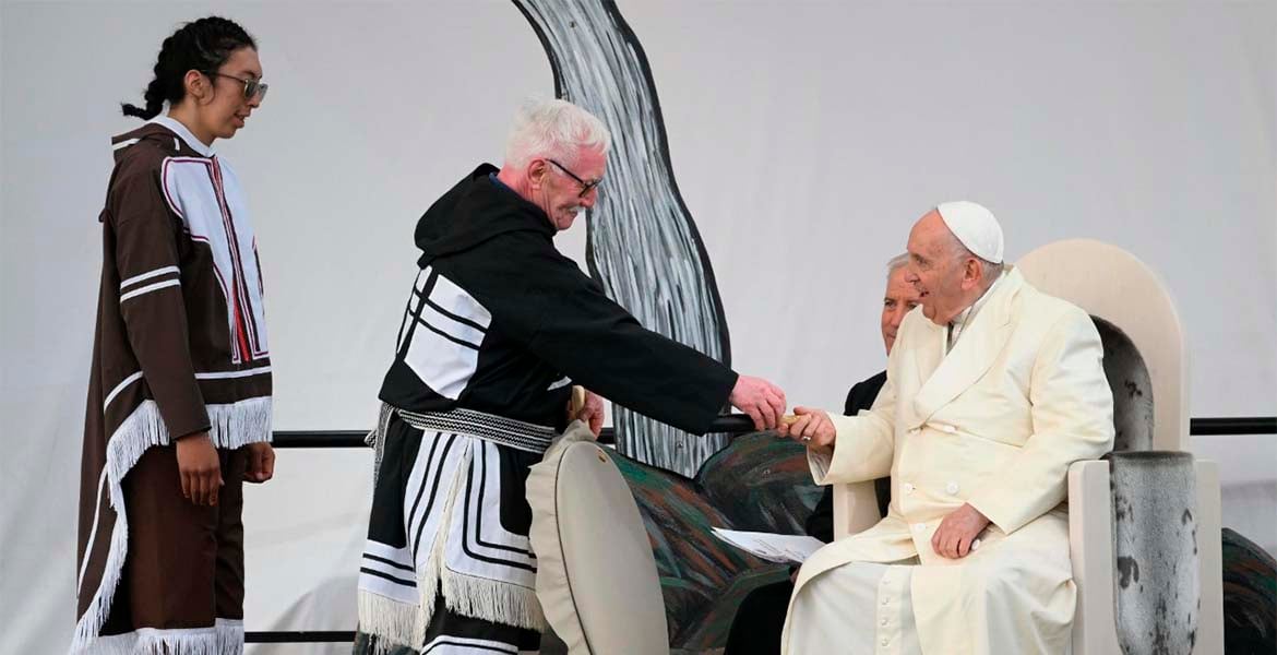 El pontífice pidió perdón por la separación de los hijos de las familias en un hecho que hizo que “el propio país fue percibido como algo peligroso y extraño” debido a las políticas de asimilación. “¡Cuánto mal al romper los vínculos entre padres e hijos, al herir los afectos más queridos, al lastimar y escandalizar a los pequeños!”, clamó Bergoglio. Ante esto, propuso “estamos aquí con la voluntad de recorrer juntos un camino de sanación y de reconciliación que, con el auxilio del Creador, nos ayude a dar luz sobre lo sucedido y a superar ese pasado oscuro”. “Así son ustedes, un testimonio perenne de la vida que no se apaga, de una luz que resplandece y que ninguno logra sofocar”, señaló el Papa.